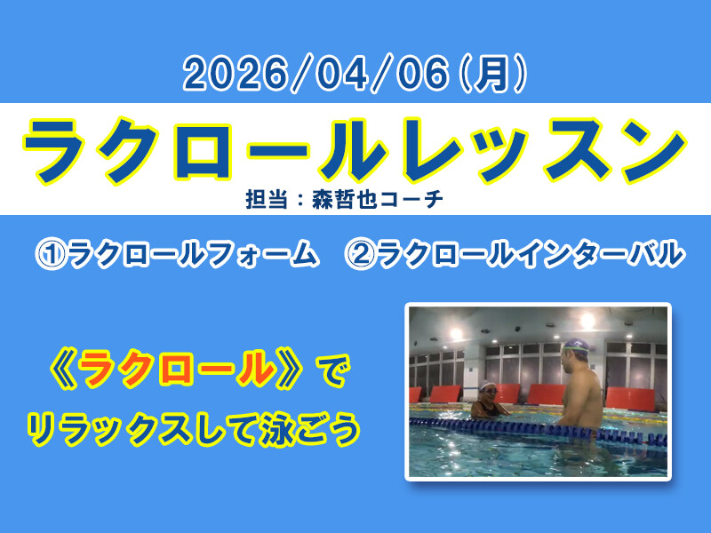 【横浜】4/12(日) ラクな背泳ぎ・ラクロール・ラクロールインターバル