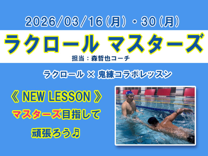 ☆新レッスン☆マスターズに向けて泳ぎこみたい方、ご参加ください