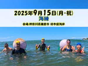 - 【鎌倉】9/15(月・祝)海練海練、鎌倉でやります! 2025/09/15(月・祝) 材木座海岸にて開催 [時間]08:15~10:00