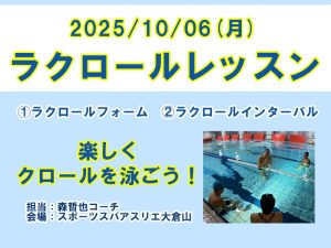 - 【東京】2/23(日)ラクロール・イベントレッスンラクロールレッスン <会場>南長崎スポーツセンター ①バタフライがラクに泳げる!ラクフライ ②クロールがラクに泳げる!ラクロール ③ラクロールインターバル
