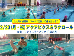 - 3/9(日)アクアビクス・背泳ぎ・ラクロールインターバル2025/03/09(日)グループレッスン アスリエ大倉山にて開催 ①アクアビクス ②背泳ぎ ③ラクロールインターバル
