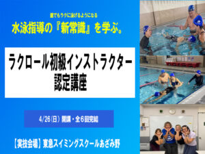 - ラクロール初級インストラクター認定講座ラクロール初級インストラクター認定講座 実施:2025年4月から9月 場所:東急スイミングスクールあざみ野