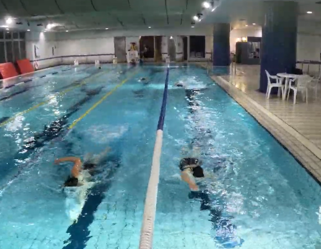 25mを複数回泳いだり、Aチームは50mも複数回泳いだり。
